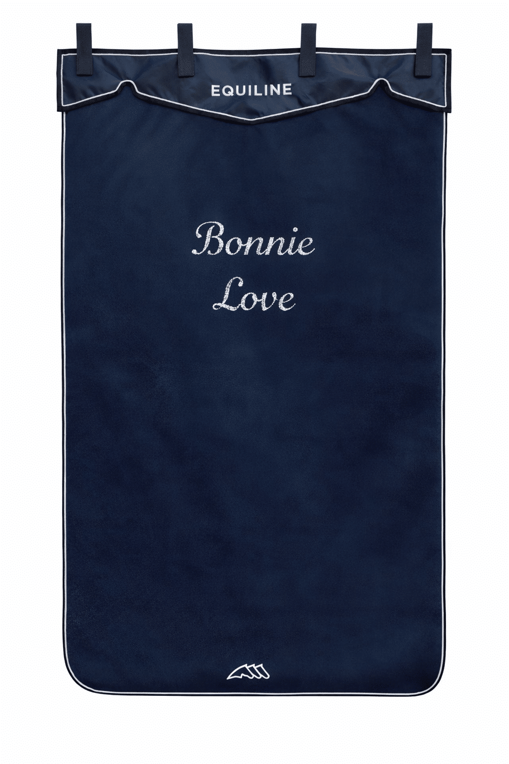 Brodyren placeras mitt på ryggen. Vid lång text kommer brodyren placeras på två rader.
