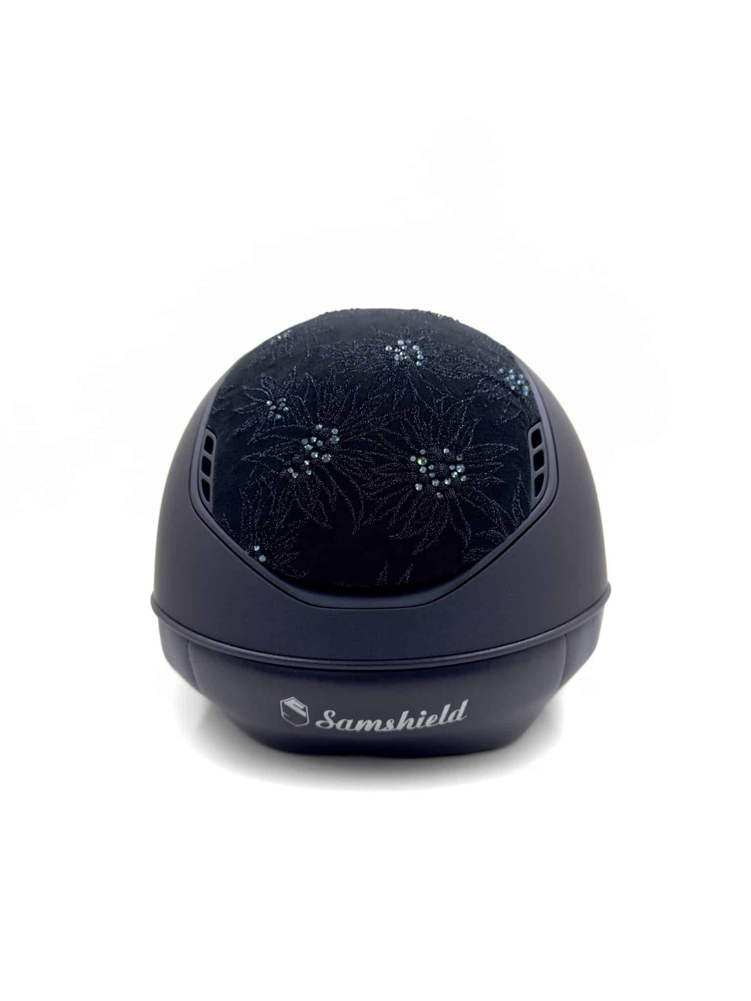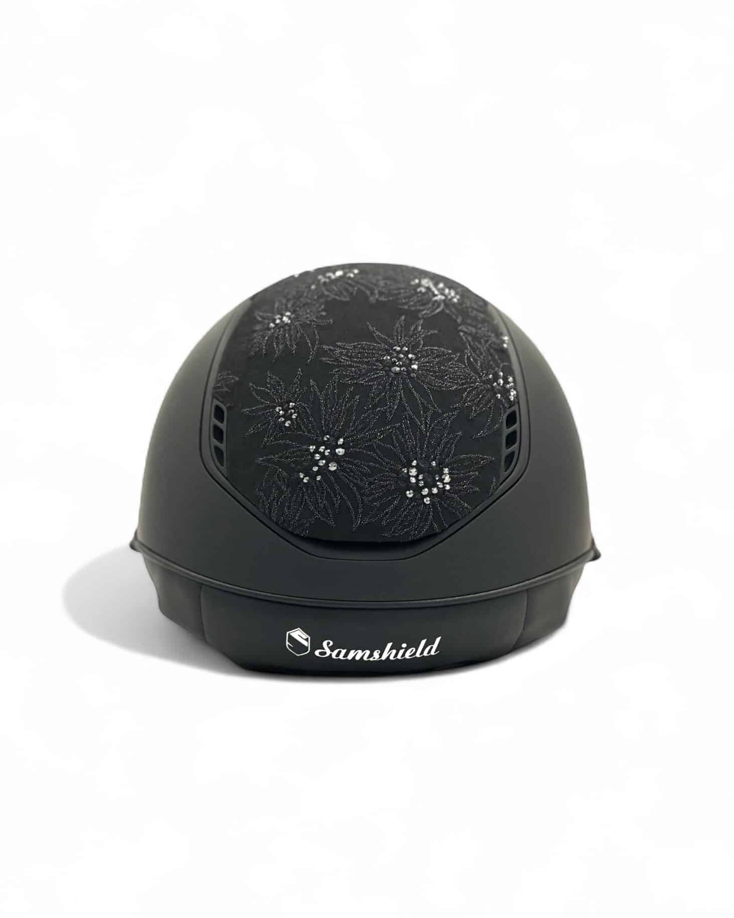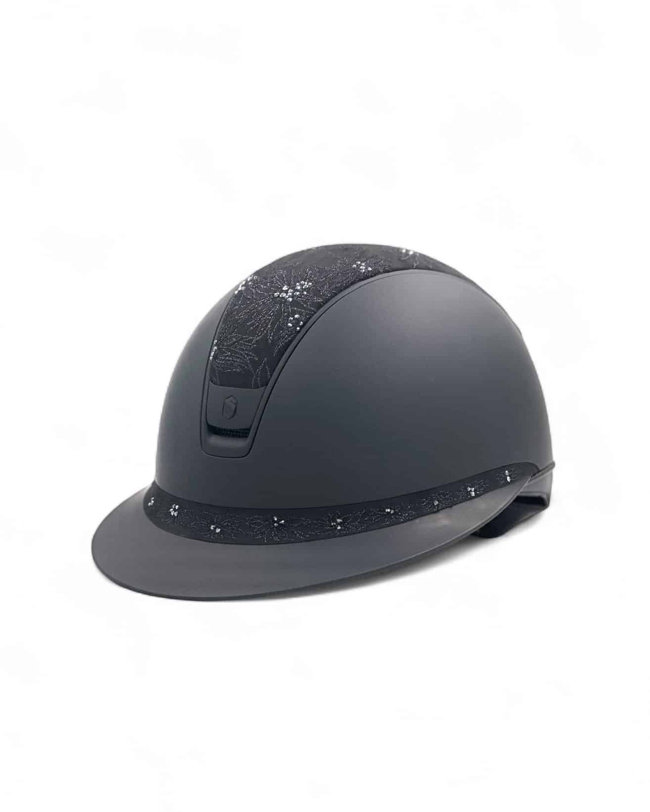 Miss shield shadowmatt ridhjälm med matt trim och exklusivt design av Spring Flower. Ridhjälmen är i den nya uppdaterade versionen 2.0 som Samshield har jobbat fram under fyra års tid för att få bästa möjliga komfort och säkerhet.