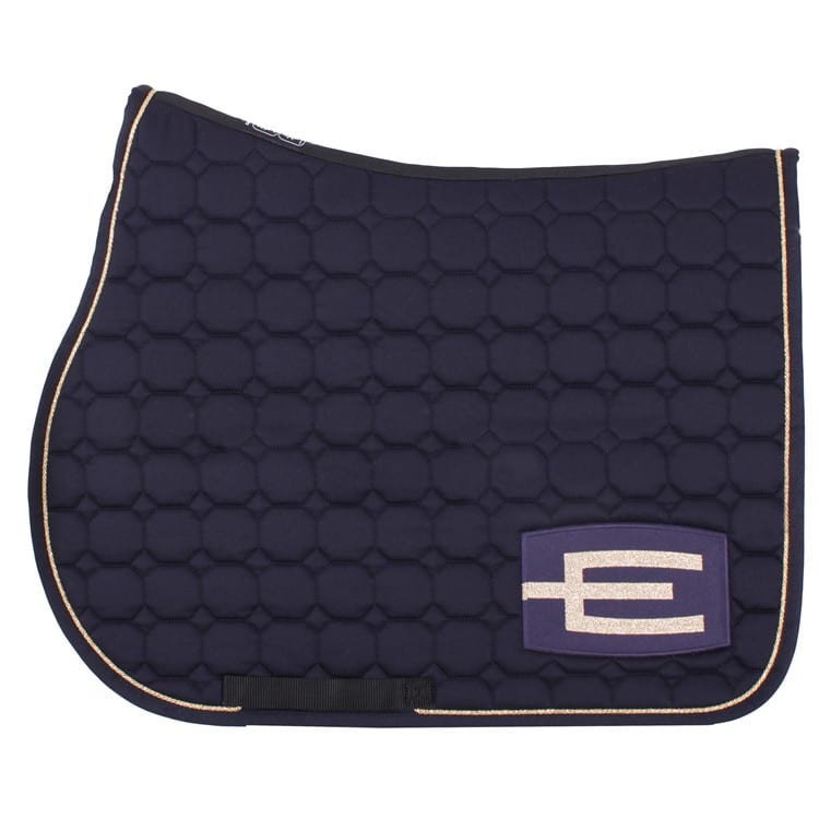 Equiline schabrak octagon allround med blå bas samt blå/glitterguld e-logga och en matchande guld passpoal.